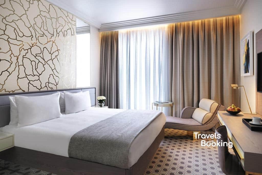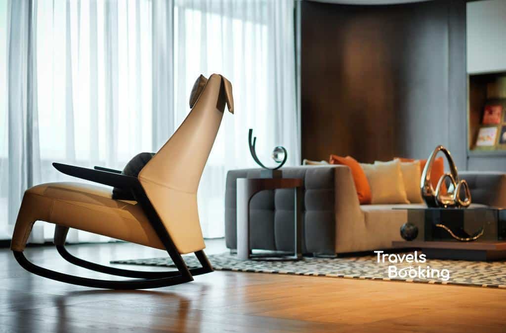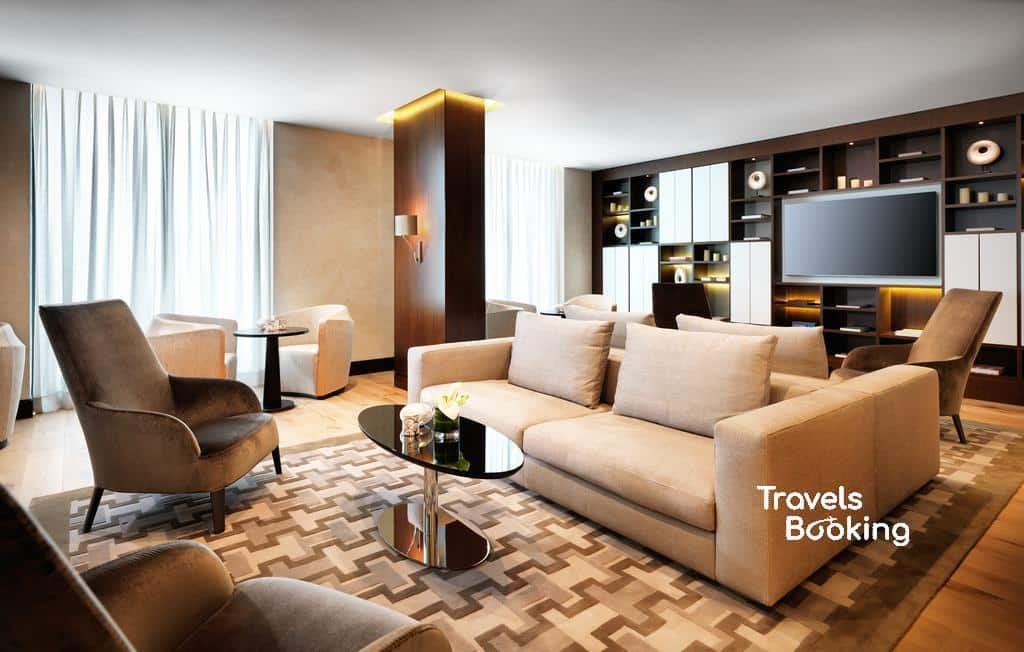 The spacious Executive Suite offers 72 m² of thoughtfully designed comfort, ideal for guests seeking both relaxation and functionality. Featuring two double beds, the suite includes a refined living and seating area, perfect for unwinding or working in comfort.