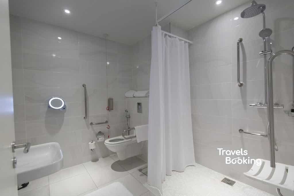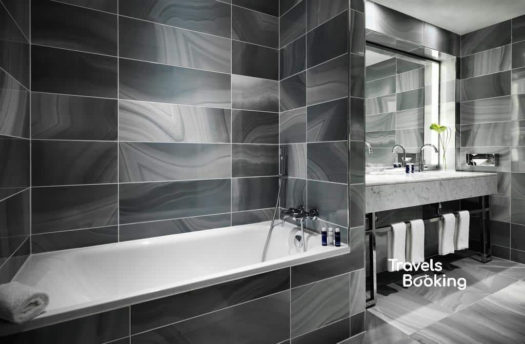 The well-appointed en-suite bathroom is designed for comfort and privacy, offering a shower, luxury toiletries, bathrobes, slippers, a hairdryer, and a full set of fresh towels and linens, along with an additional toilet.