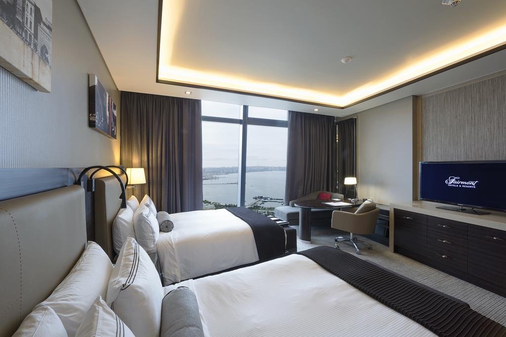 50 m² Sea view Pool with a view Rooftop pool Air conditioning Free WiFi! Free parking Room size 50 m² Featuring views of the Caspian Sea and Old City, this room provides 50 m² of exquisite accommodations, featuring contemporary décor and the best modern conveniences. Luxurious bathrooms, full media panel and HD TV are a few of the highlights of this comfortable living space. Guests staying in this room have access to private check-in/check-out, complimentary breakfast, afternoon tea ceremony, early evening Hors D’oeuvres, local beverages and complimentary high-speed WiFi in the Fairmont Gold lounge located on the 19th floor. In your shared bathroom: Free toiletries Bathrobe Additional bathroom Bidet Toilet Bath or Shower Towels Linen Slippers Hairdryer Additional Toilet Towels/Sheets (extra fee) Toilet paper View: Sea view Room facilities: Upper floors accessible by elevator Hot Tub Sauna Wardrobe or closet Tea/Coffee Maker Minibar Air conditioning Safety Deposit Box Hypoallergenic Tile/Marble floor Soundproofing Ironing Facilities Iron Interconnected room(s) available Heating Carpeted Laptop safe Coffee machine Electric kettle Tumble dryer Toaster Dining table Sofa Desk Seating Area Dining area TV Telephone Satellite Channels Pay-per-view Channels Flat-screen TV Cable Channels Outdoor dining area Socket near the bed Clothes rack Drying rack for clothing Wake Up Service/Alarm Clock Wake-up service Executive Lounge Access Smoking: No smoking Parking: Free private parking is possible on site (reservation is not needed).