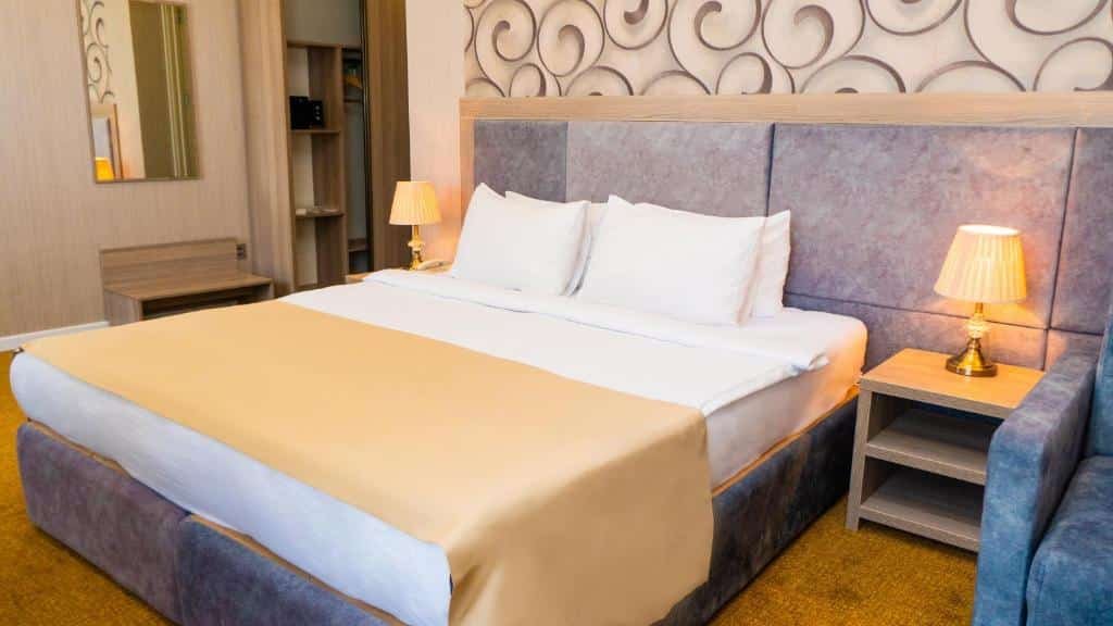 Desktop, Safe, Elevator for access to upper floors, Flat screen TV, Extended beds (more than 2 meters), Fan, Towels, Fully accessible for guests with reduced mobility, Coffee/tea maker, TV, Underwear, Mini-bar, Carpeting, Electric kettle, Heating, Telephone, Wardrobe or closet, Soundproofing, Satellite channels, Air conditioner, Clothes hanger
