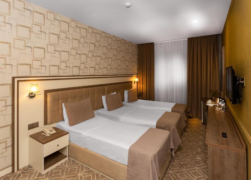 This soundproofed, air-conditioned triple room features a flat-screen satellite TV, minibar, tea/coffee maker and views of a quiet street. In the bathroom: Free toiletries Robe Toilet Bath or shower Slippers Hair dryer Toilet paper